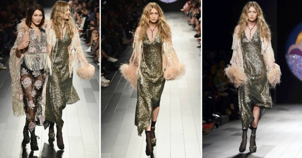На ревијата на Anna Sui во Њујорк, само што излезе на пистата, на Хадид ѝ се лизна и ѝ падна сандалата, но таа смирено и снаодливо продолжи да дефилира на прсти.