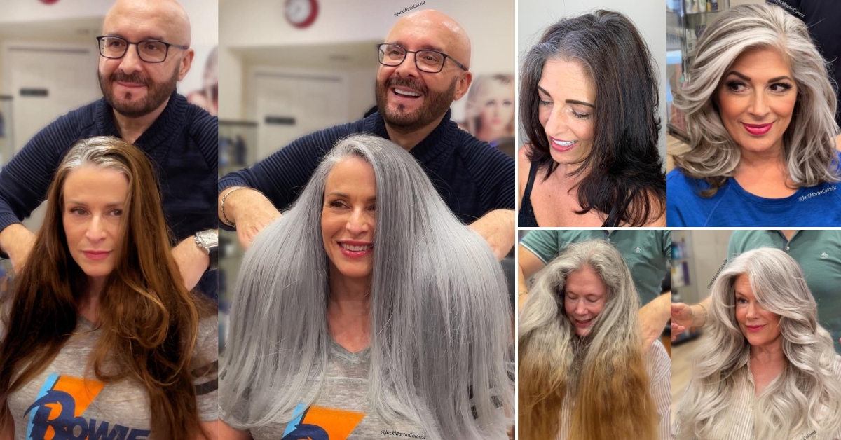 Фризер со одлични трансформации на косата им помага на жените да ги прифатат белите влакна