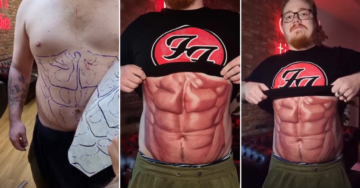 Наместо да вежба и да биде на строги диети, тој одлучил да си истетовира оцртани стомачни мускули.