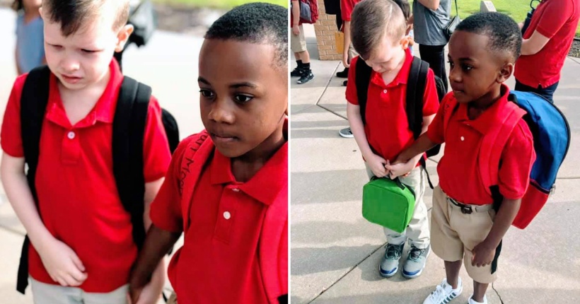 Фотографии од моментот кога 8-годишно момче се обиде да го утеши својот вознемирен соученик на првиот ден во школо, инстантно се распространија низ светот.