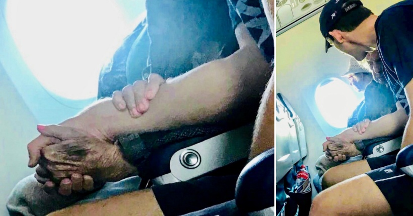 Добродушниот кавалер ѝ дозволил на 96-годишната старица да го држи за рака и да го прегрнува секојпат кога имало турбуленции, истовремено упатувајќи ѝ утешителни зборови за време на целиот лет.