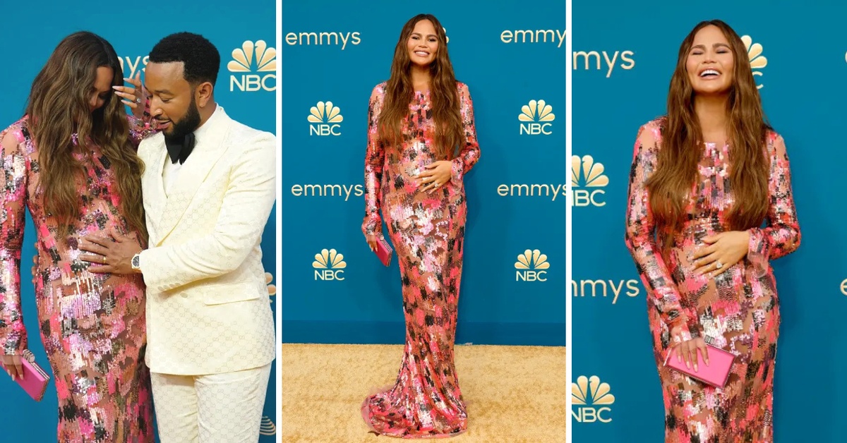 36-годишниот модел го истакна трудничкото стомаче во гламурозна креација на доделувањето на наградите Еми, каде го придружуваше својот сопруг.