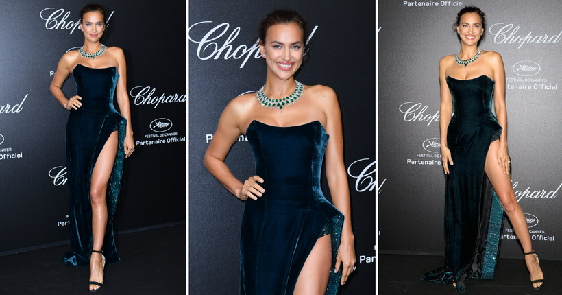 Гламурозна заводничка: Ирина Шајк со фустан со висок шлиц и блескав накит на забавата на Шопард во Кан