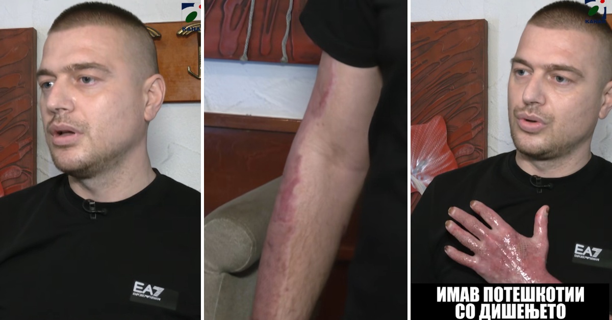 Ги ставив само така рацете да не ми изгори главата и веќе се откажав... Другиот колега вулканизер го видов како помага на луѓето и тој ме извлече надвор без патики, без алишта, од толку што беше тесно и заглавено. Дојде Брза помош, ме однесоа во кочанската болница, ми ставија инфузија.. Сестрите колку можеа помагаа, на некои не можеа и ме однесоа за Скопје. Вечерта ме испратија за Белград, имав трет степен изгореници на десната рака, имав потешкотии со дишењето. На левата рака имам трансплантации на прсти и на дланка, на десната рака имам кожа одземено од сопствените нозе. Се јавив на мојата сестра да прашам како е мојата внука и она ми кажа дека е почината. Бев во депресија, не можев да го прифатам тоа што сум го изгубил. Воопшто не се нервирам за моите раце што се вакви, колку што ми е криво што го изгубив моето ангелче затоа што нема нешто повеќе што сум го сакал од неа. И никогаш животот нема да ми биде ист како што ми бил досега.