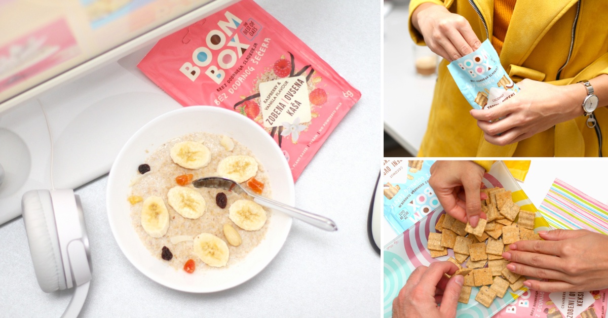 Така стигнав до Boom Box, нов бренд за здрави производи кој ни ги „става на тацна“ сите бенефиции од консумирањето на овес. Првично овесните каши и гранолата ми влегоа во секојдневието, бидејќи се супер брзи за подготовка и доаѓаат со различни вкусови. Каша со чоколадо и лешници, каша со банана, чоколадо и лешници, каша со шумско овошје и бадеми, гранола со чоколадо и бадеми... Boom Box не остава простор за монотонија.