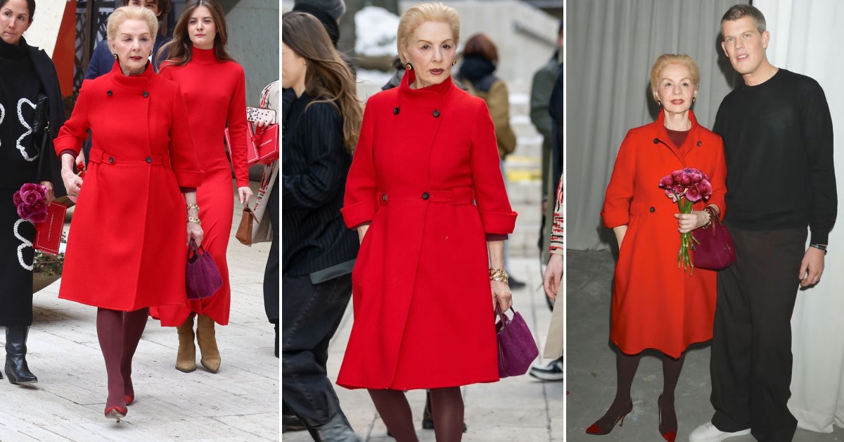 86-годишната дизајнерка е доказ дека годините се само обична бројка. Таа се појави на модното шоу во елегантно црвено палто и салонки со високи потпетици. Модната креаторка со големо внимание ги следеше манекенките кои ги носеа моделите дизајнирани од Вес Гордон, креативниот директор на нејзиниот бренд.