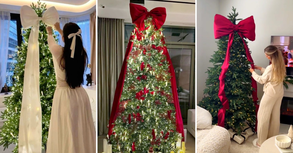 Најновиот тренд за оваа година кај декорирањето на новогодишната елка е поставувањето на огромна панделка на врвот, која инстантно ќе ги привлече погледите на сите гости.