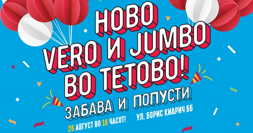 Големата забава по повод отворањето на реновираниот Веро маркети нова продавница Џамбо ќе почне во 16 часот и ќе биде наменета за целото семејство. За најмладите ќе се организираат забавни игри со слатки награди, дружење со омилените ликови од цртаните филмови и многу интересни подароци за сите. За возрасните, Веро маркетот ќе понуди специјални попусти, акции и изненадувања. Притоа, за секоја сметка над 1.000 денари направена во периодот од 26 дo 28 август, потрошувачите во овој маркет ќе добијат ваучер од 100 денари кој може да го искористат за пазарување во новиот „Џамбо“ маркет.