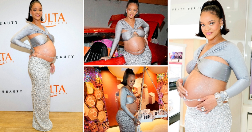 Облечена во краток сребрен топ кој го разголуваше нејзиното стомаче и блескаво здолниште од Coperni, 34-годишната пејачка уште еднаш покажа дека нема намера да носи стандардна трудничка облека.