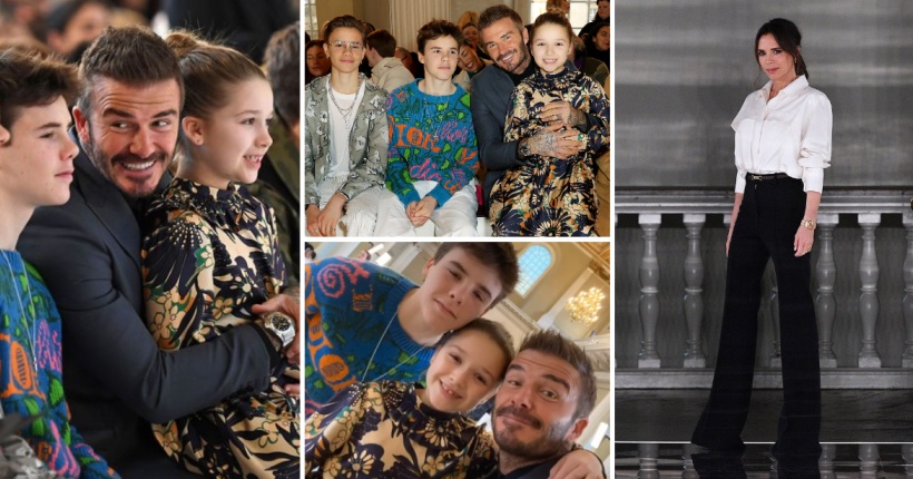 44-годишниот поранешен фудбалер со ќеркичката Харпер и синовите Круз и Ромео од првиот ред ја проследија најновата ревија на 45-годишната дизајнерка.