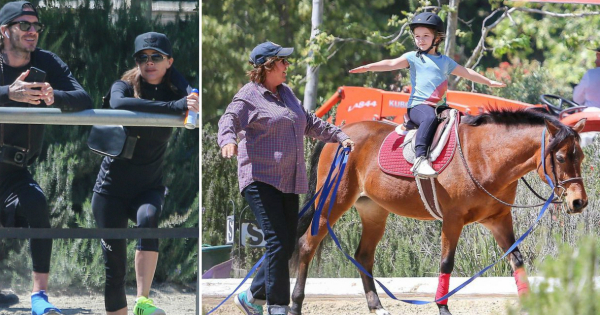 Гордите родители беа фотографирани во Калифорнија додека со насмевка на лицето ја гледаа малата ќерка Харпер како учи да јава коњ. 5-годишното девојче не можеше да си ја скрие среќата за време на часот.