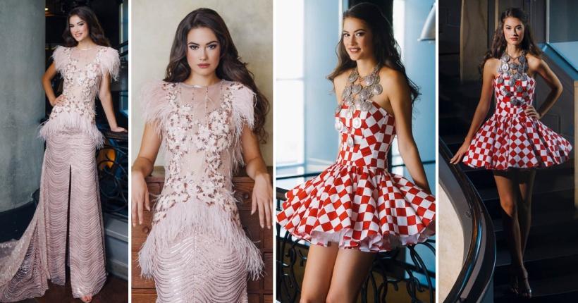 Фустанот со црвено-бели коцки, кои потсетуваат на хрватското знаме и дресовите на хрватските фудбалери, е дело на дизајнерот Ивица Скоко и е наречен „Гордоста на Хрватска“.