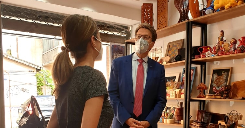 Еден од редовните посетитители на сите базари на Креативна Македонија и голем обожавател на рачните изработки е шефот на делегација на Европската Унија Господинот Самуел Жбогар.
