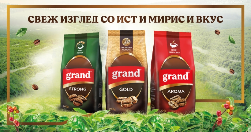 Пролетта е идеално време за новитети, а овојпат таа ни носи освежување во вид на редизајнирано пакување на производите од богатото портфолио на Гранд кафе! Свеж изглед на пакувањето, а истиот и мирис и вкус, како и врвниот квалитет на кој сте навикнати, ќе го направи целосно уживањето во совршената шолја кафе. Благодарение на широката понуда на вкусови на Гранд кафе, секој може да го пронајде токму она што најмногу му одговора!