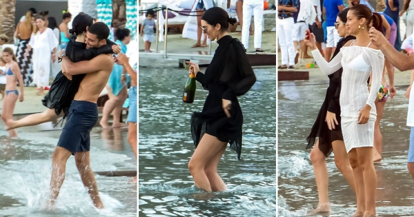 Славните модели беа фотографирани на забава на плажа и додека се релаксираа на чамец.