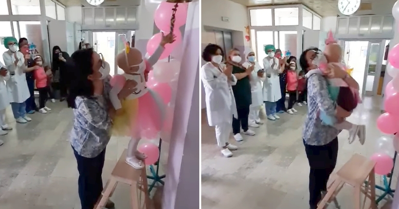И бестрашната хероина Ана силно заѕвони, за да го означи крајот на две битки – една со короната и една со рак. Малото девојче беше бодрено со аплаузи и извици „Браво Ана“. Видеото ќе ви го стопли срцето: