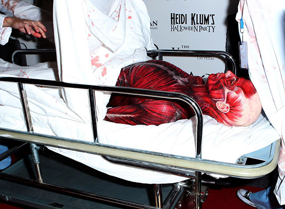 Можеби најголемо внимание привлече страсната обожавателка на Халовин, Хајди Клум. 38-годишната манекенка се појави како труп без кожа на забавата организирана од неа во ноќен клуб во Лас Вегас.