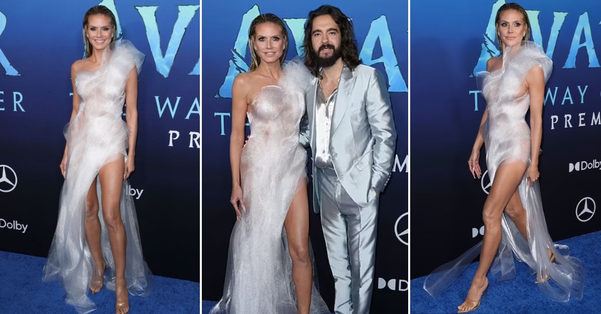 Хајди Клум во асиметрична проѕирна креација покрај сопругот Том на премиерата на „Avatar: The Way of Water“