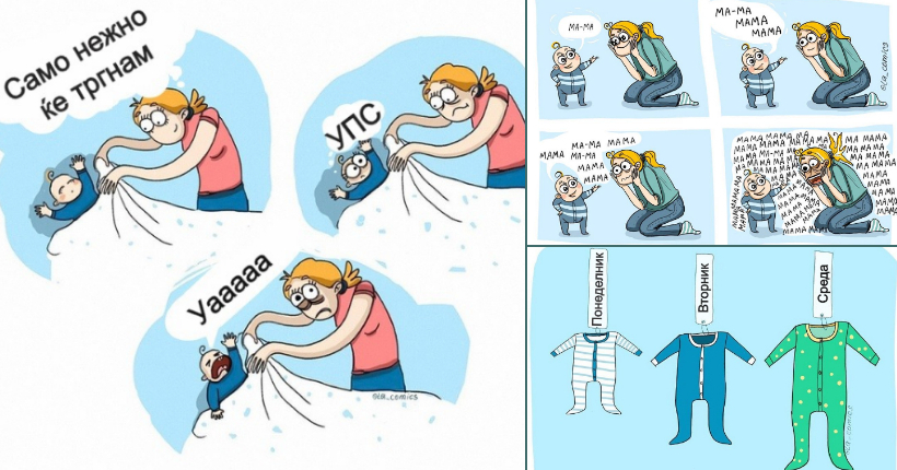 Мајка од Украина низ хумористични илустрации го раскажува своето секојдневие со двата сина и сопругот. Ако имате мали деца, несомнено ќе се пронајдете во илустрациите на Олга Алексеева.