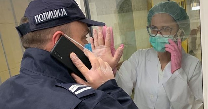 Хероите на денешницата: Полицаец со сопругата која е медицинско лице си даваат поддршка преку стакло во Србија
