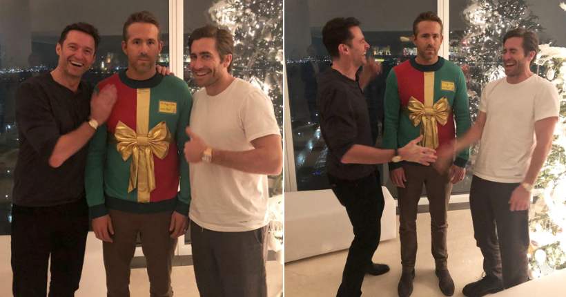 Хју Џекман и Џејк Џиленхал се пошегуваа со Рајан Рејнолдс, канејќи го на забава со „грди божиќни џемпери“
