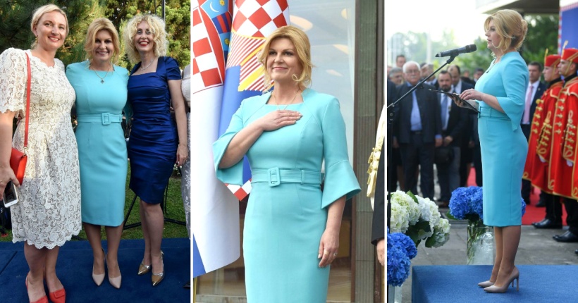 51-годишната хрватска претседателска изгледаше прекрасно со елегантна сина креација на настанот во Загреб. Својот моден избор, Колинда го искомбинира со бежови салонки.