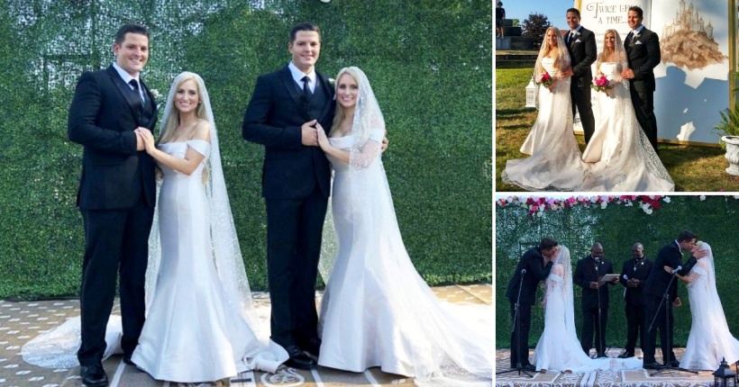 Идентични близначки во исти венчаници се омажија за идентични близнаци на заедничка свадба