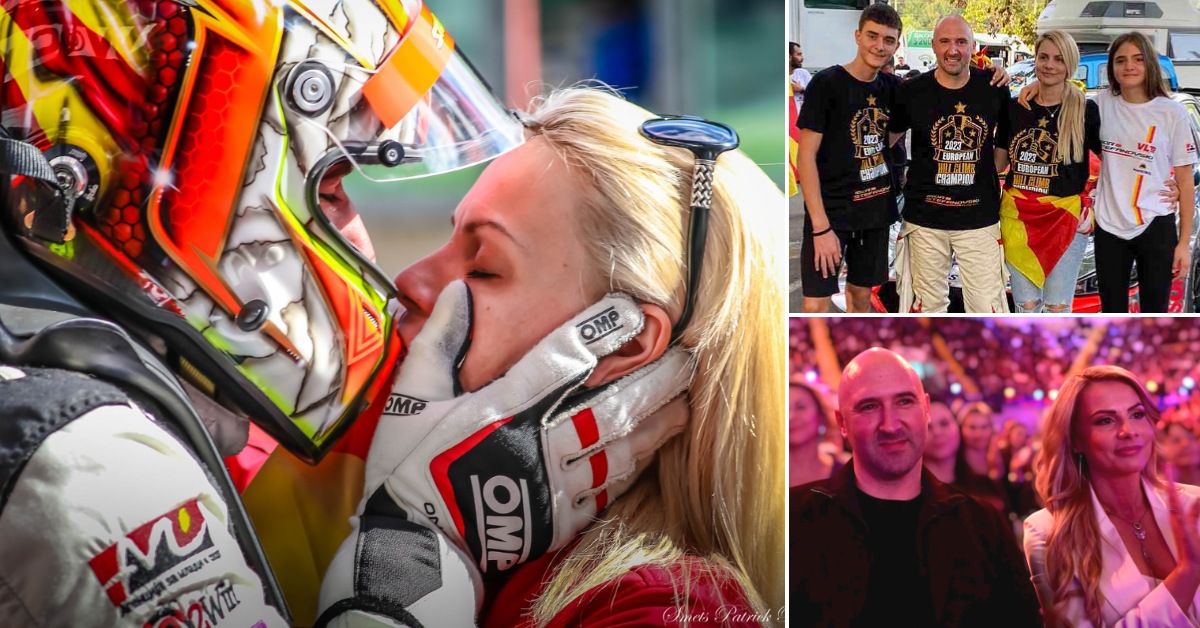 На една од фотографиите, тие се бакнуваат пред трка, на друга се во публиката на „Златна бубамара“, на третата позираат во природа, а на четвртата се прегрнуваат со нивните две деца Олег и Нина.