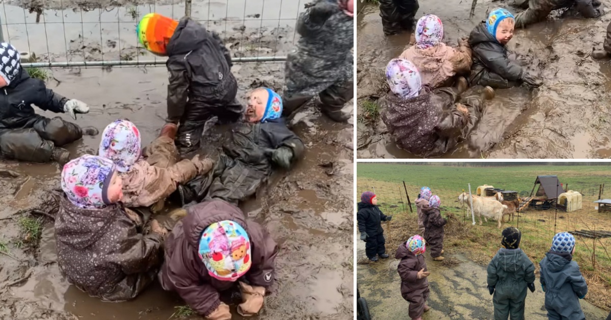 Всушност, станува збор за еден нормален ден во градинка во Данска кога на дечињата им е дозволено да бидат во допир со природата и покрај лошите временски услови.