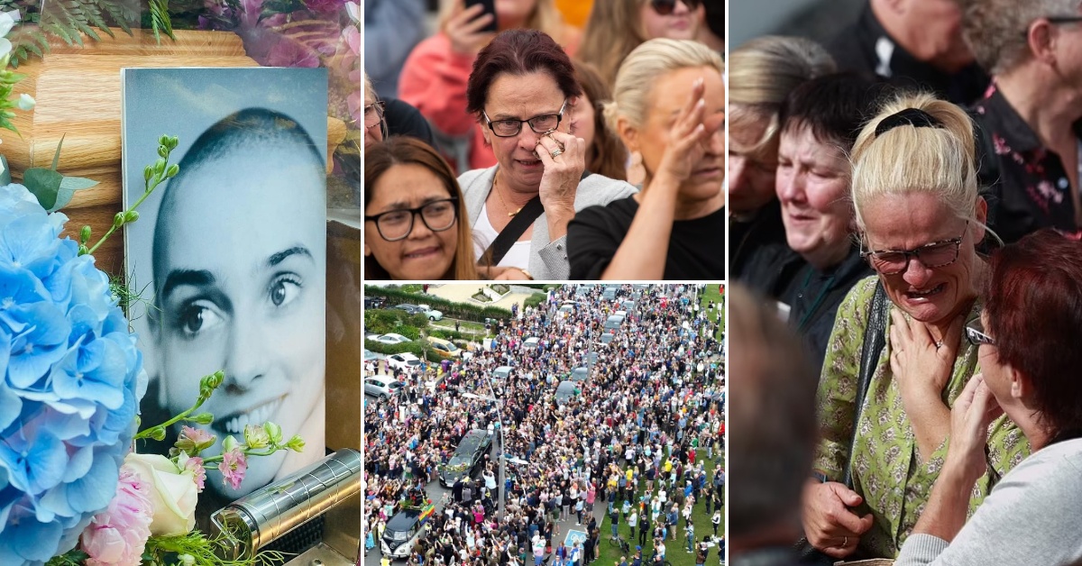 Илјадници фанови се собраа да ѝ го кажат последното збогум на пејачката, која почина минатиот месец на 56-годишна возраст. Тие низ солзи го пееја хитот „Nothing Compares to U“ додека возило со нејзиниот ковчег поминуваше низ толпата луѓе. Потоа возилото запре пред нејзиниот поранешен дом додека од него се слушаше „Natural Mystic“ од Боб Марли.