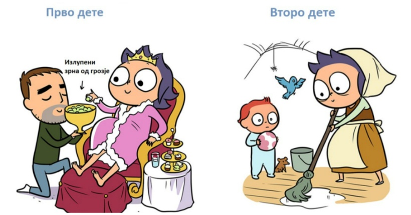 Забавни илустрации прикажуваат колку поразлично родителите се однесуваат при грижата за првото и второто дете.