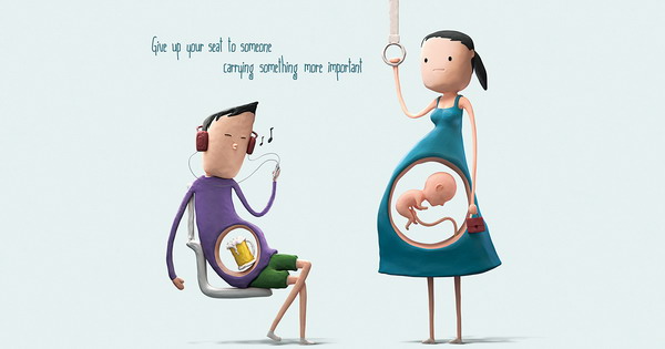 Талентиран Кинез создаде илустрации кои нè потсетуваат дека треба да станеме од своето место во автобус доколку стои трудница која нема каде да седне.