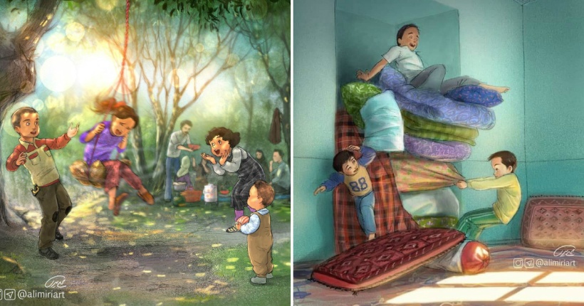 Артист од Иран во неговите цртежи доловува како се забавуваа децата во времето кога немаше смартфони, интернет и социјални мрежи.
