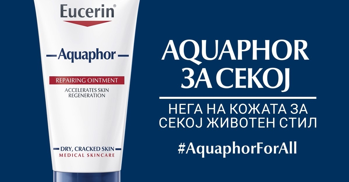Оние пак што се жедни за авантури, важно е во торбата да се има суштински придружник. Без разлика дали се работи за планина, нуркање, пешачење низ дивина, откривање на блиски и далечни дестинации, кожата е подложна на стрес. Единствен начин кожата да „дише“ е олеснување на процесот на размена на испарувањето и кислородот. Редовната нега на кожата на рацете, прстите и стапалата помага да се заштити кожата од исушување и распукување. Eucerin Aquaphor помага и за рани, исекотини, гребаници итн. Мајките пак, што се грижат за своите малечки, ја знаат борбата со чувствителната кожа, особено со нежната бебешка кожа. Бариерата што Еуцерин Aquaphor ја создава е како смирувачки кожурец, ја блокира влагата и спречува понатамошна иритација. Збогатена со глицерин што буквално е магнет за влага се обезбедува задржување на хидратацијата на самата кожа, така и кожата на бебето останува природно мека и еластична.