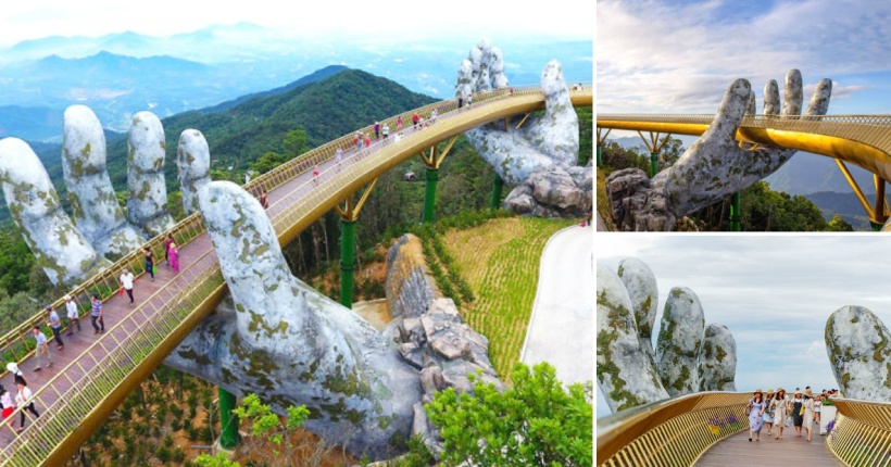 Новоизграден мост во Виетнам, кој изгледа како да го држат две џиновски раце, ги одушевува посетителите со уникатната градба.