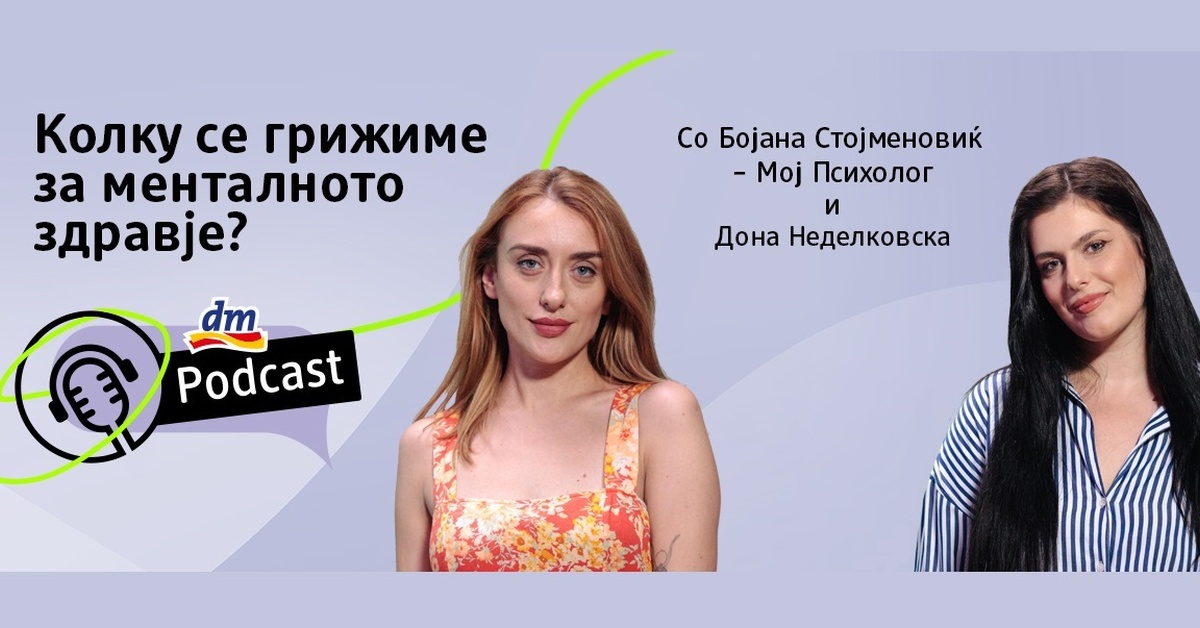 Слушателите на dm поткастот, овој пат ги очекува искрена и интересна диксусија на темата „Колку и како се грижиме за менталното здравје?“. Во оваа епизода ќе ги слушнете советите и искуствата на две познати дами, заедно со водителката Ана Јовковска.
