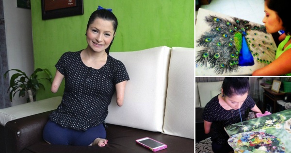 Инспиративна приказна: Девојка родена без раце и нозе создава уметнички дела со помош на устата