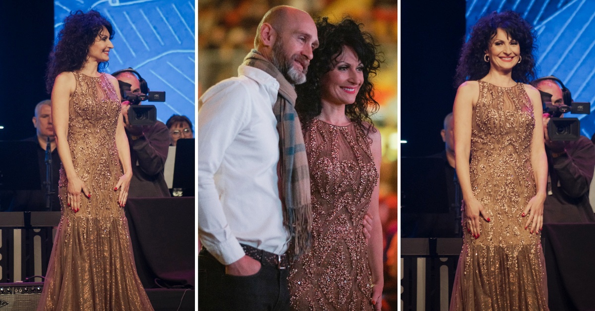 На манифестацијата во „Борис Трајковски“, македонската водителка изгледаше гламурозно во долга вечерна тоалета. Таа беше придружувана од својот партнер.