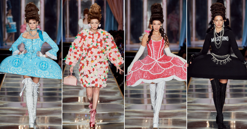 Дизајнерот Џереми Скот црпел инспирација од Француската револуција и кралицата Марија Антоанета. Името на колекцијата „Let them eat Moschino“ е инспирирано од нејзината прочуена фраза „Ако народот нема леб, нека јаде колачи“ (Let them eat brioche).