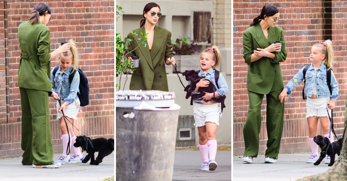 Атрактивната Русинка беше „уловена“ со слатката Леа и нивното кученце во Њујорк. На фотографиите, 38-годишната манекенка изгледа шик во зелен костум и патики.