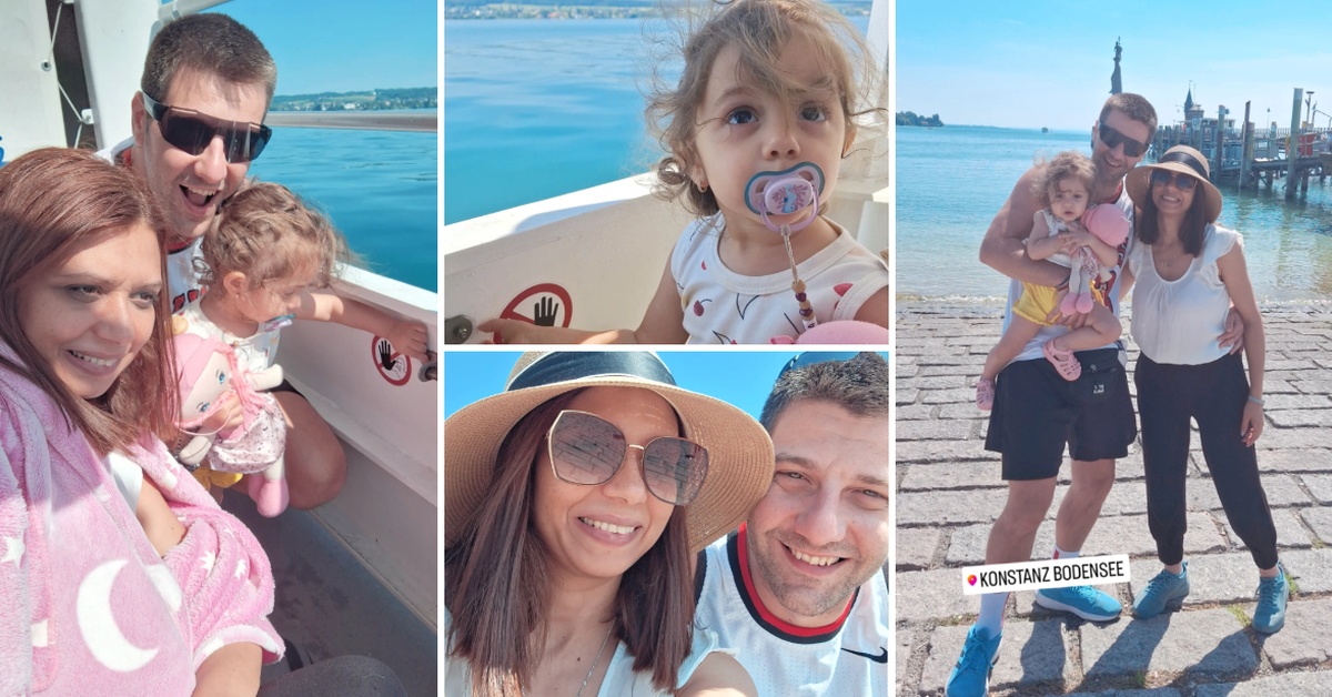 Среќниот пар е придружуван од ќеркичката Лена со која позираа покрај Боденското Езеро и се возеа на бротче.