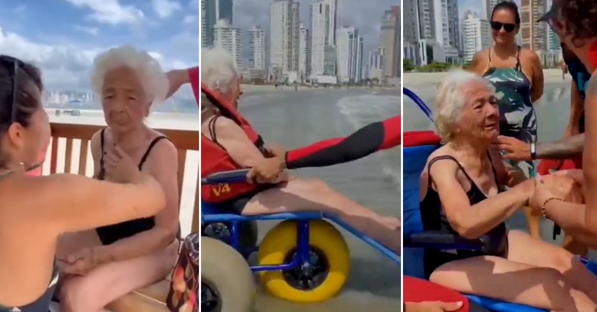 Marcilia hadn't been able to enjoy the beach in decades—so for her 97th birthday she asked her daughters if she could take a dip in the ocean. Watch as she is overcome with emotion sharing the beautiful moment with her daughters. Bless these sweet lifeguards. pic.twitter.com/82AcUC6j2Y