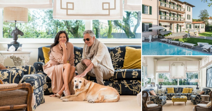 60-годишниот пејач, кој поради глаукома ослепе на 12-годишна возраст, позираше со својата сопруга Вероника во семејниот дом во Тоскана, каде живеат со трите деца.