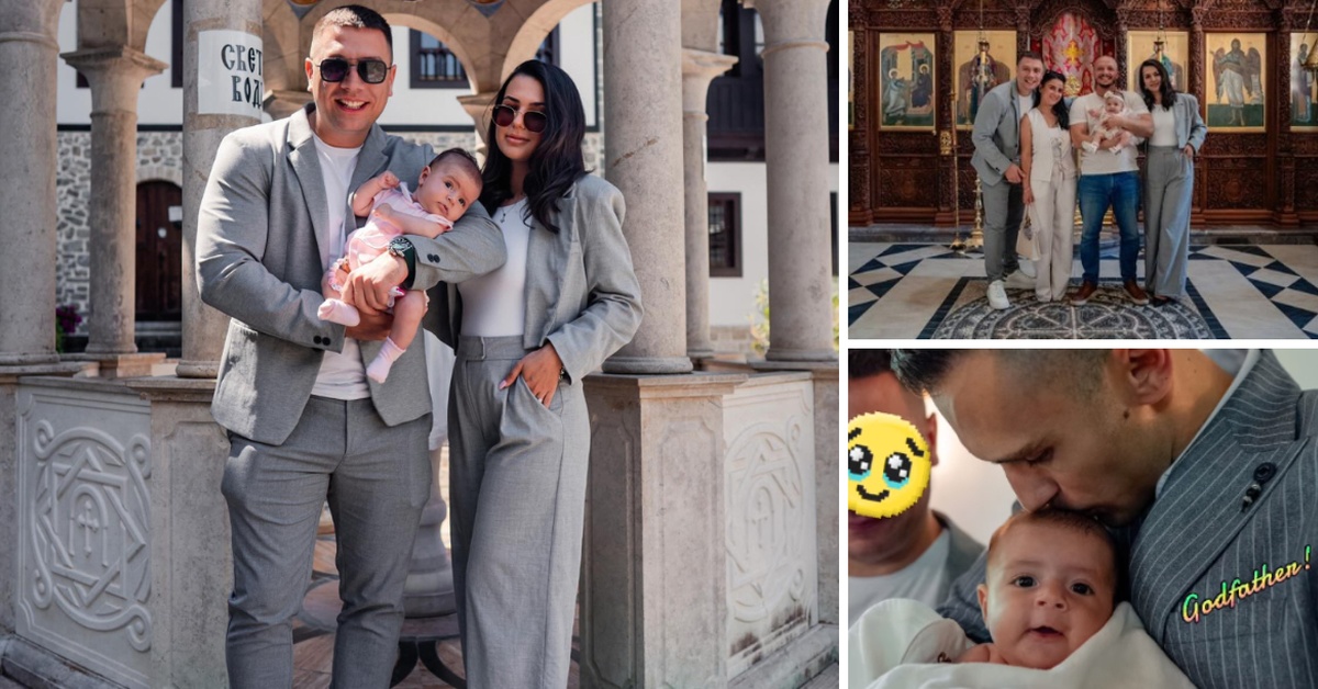Иван Јованов и неговата сопруга Ивана избраа координирани стајлинзи за крштевката на нивната ќеркичка Ниа.
