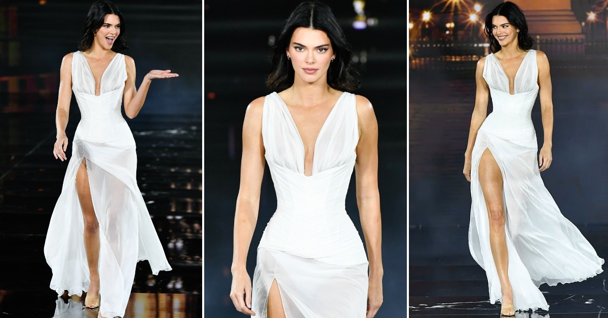 На ревијата Le Défilé на L’Oréal, 29-годишната манекенка зачекори во бела проѕирна креација со висок шлиц од колекцијата пролет/лето 2003 на La Perla и доби бројни комплименти за изгледот. Изгледот на Кендал беше комплетиран со сандали од Стјуарт Вајцман.