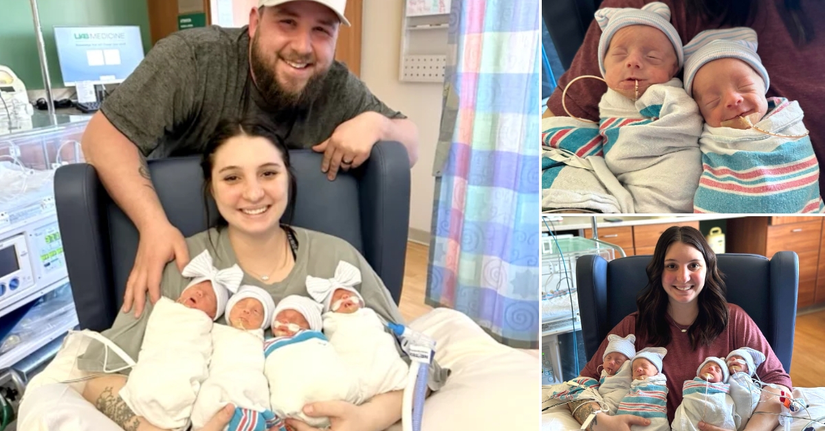 Евелин, Аделин, Мајкл и Даниел се родиле во 27. гестациска недела и ќе останат во болница до нивниот термин за раѓање кој требаше да биде во јуни. Сите бебиња во моментов дишат сами и се во одлична здравствена состојба.