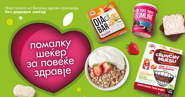 Виталиа се грижи и за оние чии денови се динамични и исполнети со обврски па најчесто немаат доволно време за здрав оброк. Со новите Take away Slimline мусли од Виталиа секој може да има брзо подготвен здрав појадок кој ќе даде доволно енергија за почеток на активностите во денот. Новите мусли на Виталиа иако немаат додаден шеќер имаат доволно нутритивни состојки за задоволување на потребите на телото и организмот. Подготовката на истите е многу едноставна. Се што треба да направите е да додадете вода или млеко по избор во компактното пакување и здравиот појадок е подготвен.