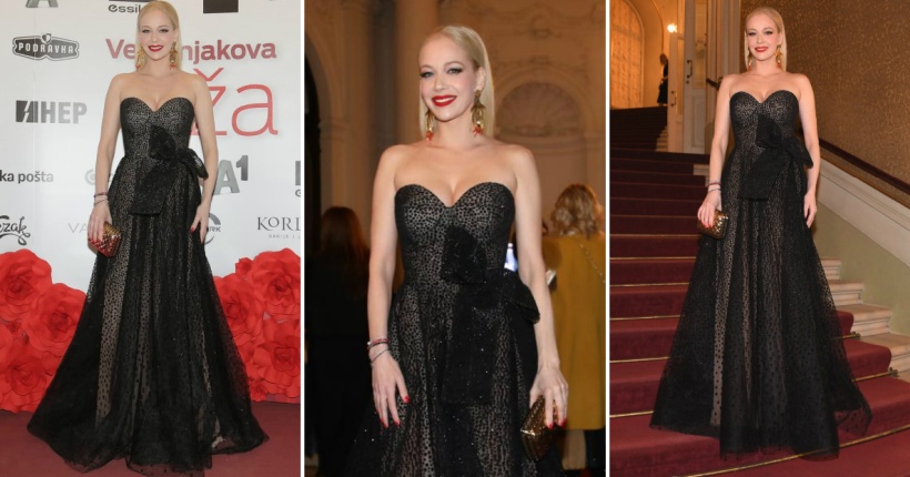 41-годишната пејачка изгледаше гламурозно во вечерна тоалета од хрватскиот бренд eNVy room.
