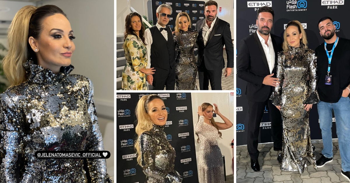 Јелена Томашевиќ заблеска во Абу Даби. 39-годишната српска пејачка изгледаше гламурозно во светкава креација на концертот кој го одржа со Андреа Бочели.