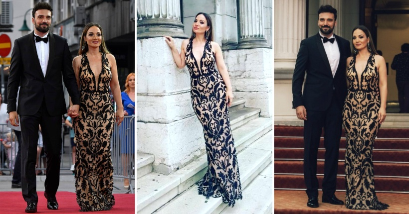На црвениот тепих, 34-годишната пејачка шармираше во елегантен фустан кој доаѓа од ателјето на дизајнерката Тијана Тодоровиќ.
